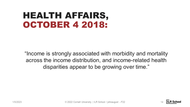 When we begin to look at the relationship of low-wages to health, the results are stark and frankly are a well-known and accepted driver of poor health.